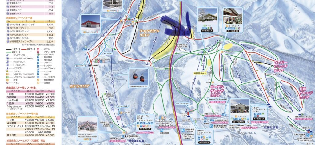 ちなみに、赤倉観光ホテルが位置するスキー場は「赤倉観光リゾートスキー場」ですが、「赤倉温泉スキー場」にも直結しており、(うまい人は)両方のリフト券を購入すれば、コースを通じて行き来をすることができます。