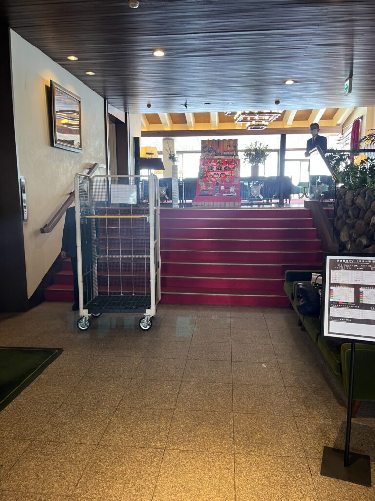 いざレンタカーに乗り、赤倉観光ホテルの入口前につくと、スタッフの方が中から出てきてくれて、荷物を下ろすのを手伝ってくださいました。