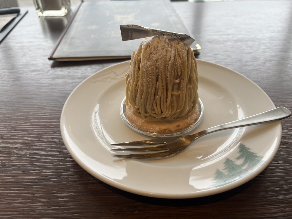 ショーケースにおいしそうなケーキが並んでいたので、ふらっと入ってモンブランをいただきました。