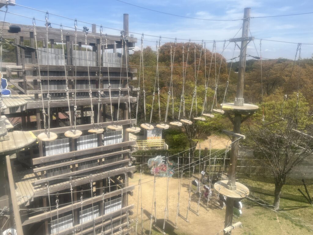 クレヨンしんちゃんエリアは小さい子から小学校高学年ぐらいまで幅広く楽しめるのではないかと思います。アスレチックはハーネスをつけないキッズエリアから、高さ8mの大人もちょっと怖いぐらいの難易度高めのコースまであります。